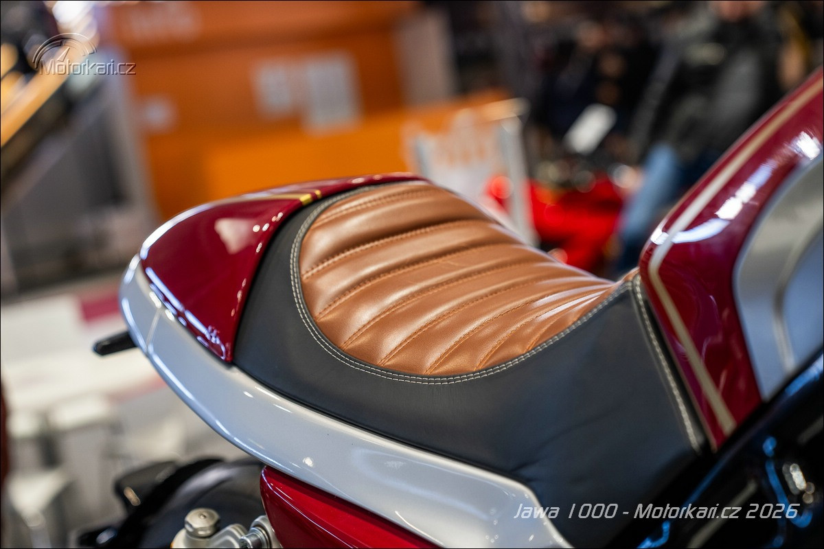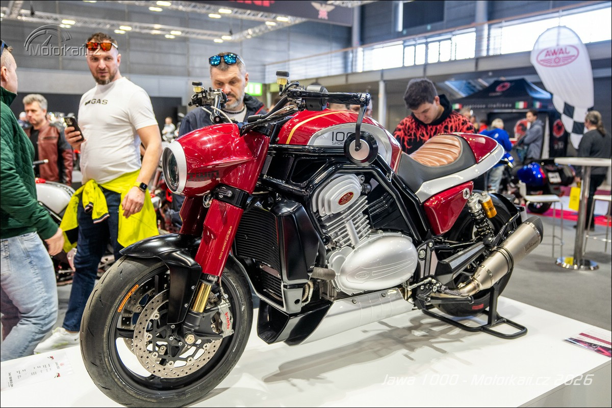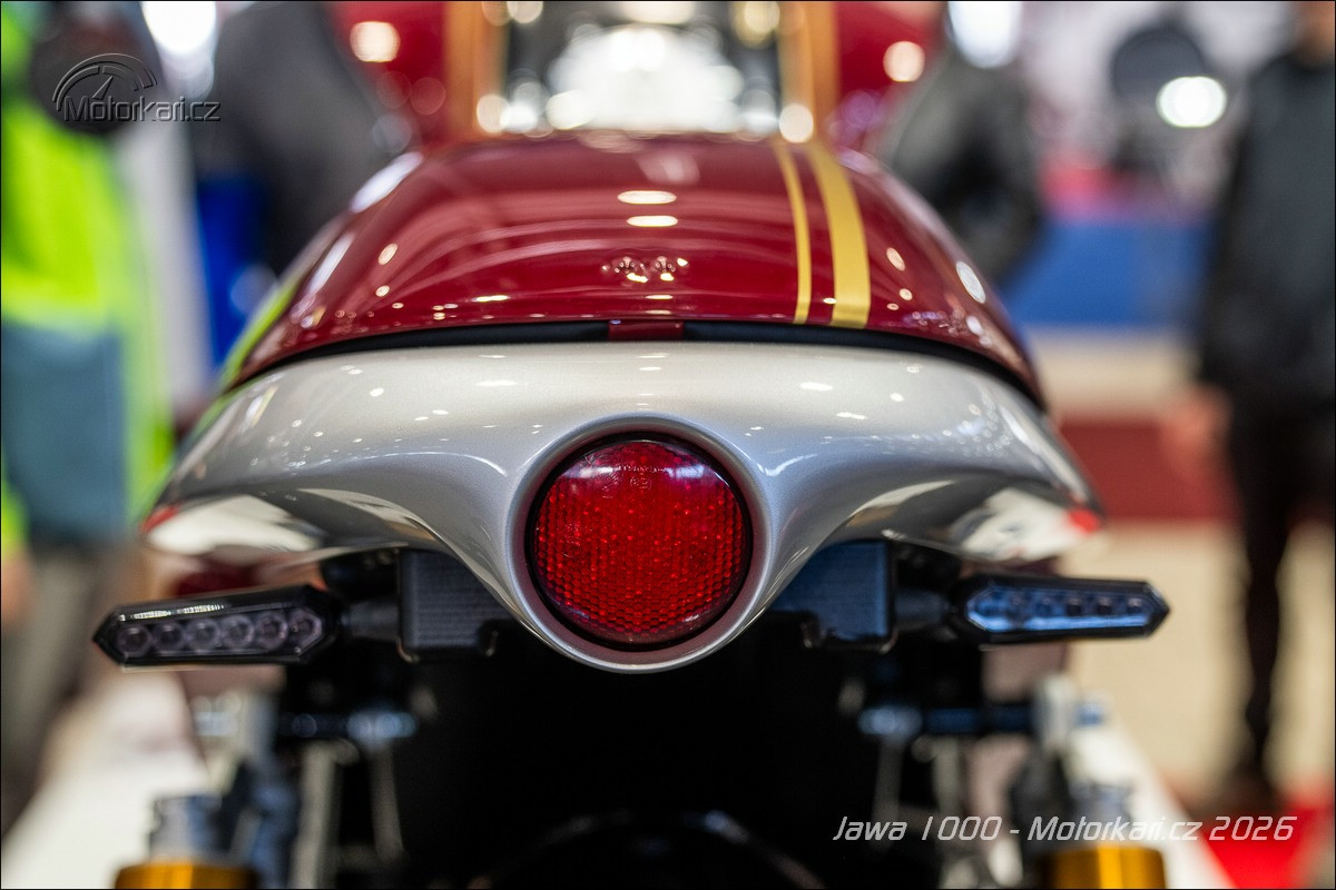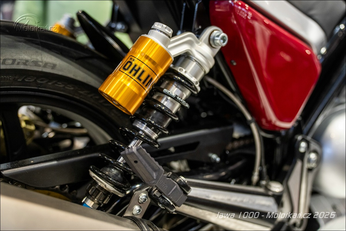 Vystavený jediný kus je samozřejmě ještě pořád prototyp a nemůže být vyvedený v jiné než typické červené jawácké barvě, doplněné o zlaté linky. Zatímco u sedm set třicítky budou barvy pevně dané (určitě jawácká červená, potom zřejmě i druhá vystavená světlá červená a nejspíše i černá), litr bude od začátku do konce personalizovaný podle přání majitele. Když si ten řekne, že chce motorku růžovou, tak ji dostane. Stejně tak odpružení je vystavené motorce Öhlins, ale jestli tam klient bude chtít Marzocchi nebo něco jiného, je na něm. Litr se totiž bude vyrábět na zakázku a rozhodně to nebude levná záležitost. Hovoří se zhruba o 1,5 milionu korun, přičemž se počítá s tím, že první (a kdoví, jestli nakonec ne i poslední) série bude mít 10-15 kusů. Litrová Jawa je tedy konečně již realitou, ale na silnici ji určitě moc potkávat nebudeme.
