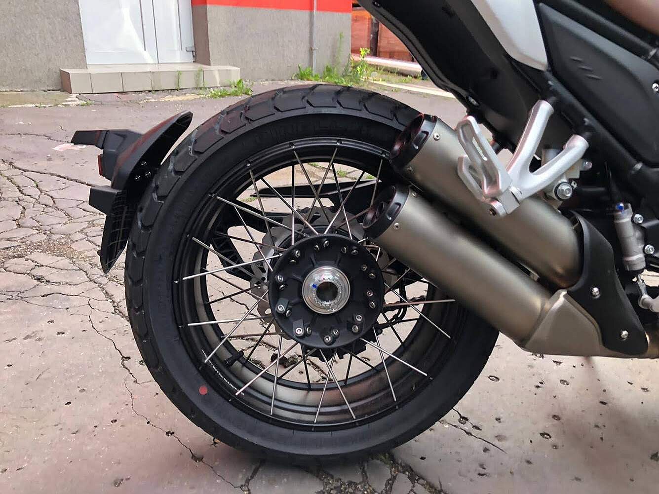 To samé platí pro barevný TFT přístrojový displej i slušné osazení kvalitními a značkovými komponenty. Odpružení na sobě nese značku Kayaba, dvoupístkové brzdy dodal Nissin, pneumatiky jsou bezdušové Pirelli MT60 RS o rozměru 110/80 na předním osmnáctipalcovém kole a 160/60 na zadní sedmnáctce.