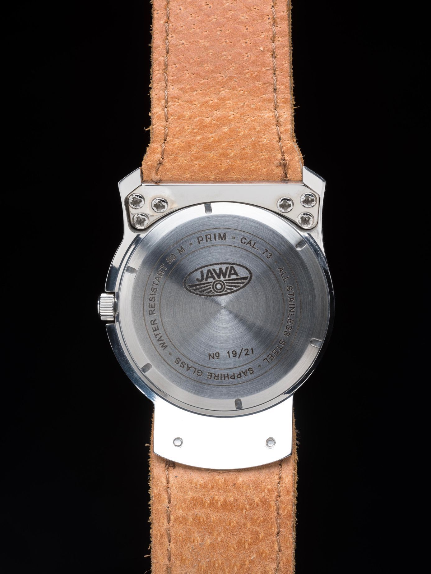 Prim Jawa Rider jsou hodinky, které nelze přehlédnout. Tlustý světle hnědý kožený pásek přivrtaný k vodotěsnému pouzdru hodinek je sladěný s barvou sedla limitovaného motocyklu. Obří číselník s logem Jawy i Primu je samozřejmě červený a za pozornost stojí vteřinovka, rovněž s logem Jawy na konci.